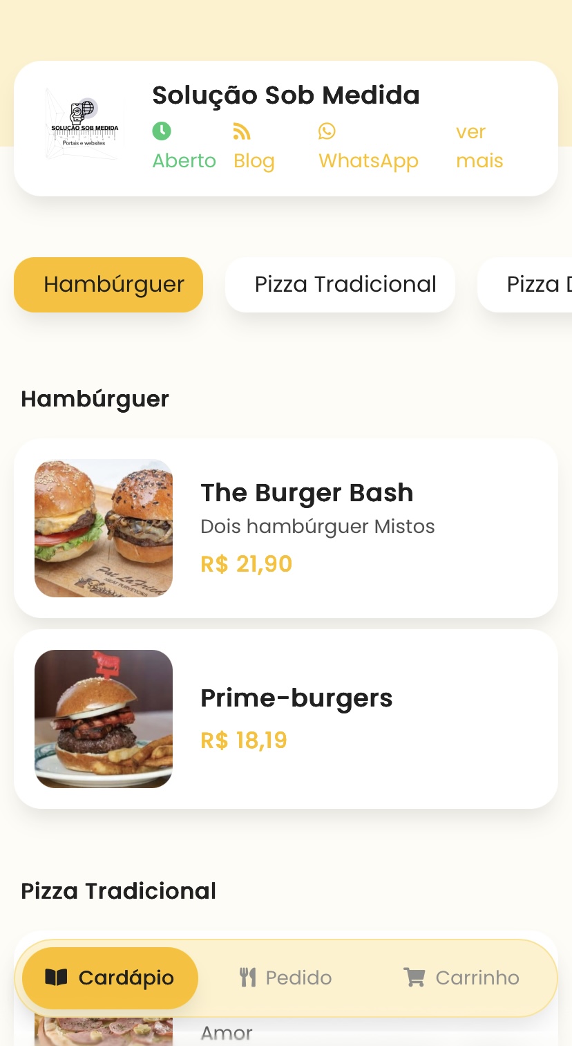 Ofereça mais praticidade aos seus clientes e impulsione seus negócios. Gestão de pedidos simplificada, acompanhamento em tempo real e muito mais! Cardápio digital 100% personalizável, simples, rápido e eficiente! ✨Cardápio estilo delivery